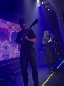 Onde elettriche si sono propagate dalla prima nota, intrecciandosi alle immagini psichedeliche proiettate alle loro spalle: vortici cromatici, frammenti pulsanti, apparizioni liquide. Sembrava che lo schermo respirasse insieme alla band, trasformando la sala in una piccola caverna visionaria in cui il suono e l’immagine diventano un unico corpo vibrante. Un’atmosfera appagante, avvolgente, che ti cattura e rimanda al mittente, per una notte, tutte le ansie e i disagi che questa società conformista, mediatica, paternalistica e solo in apparenza accogliente ci scarica addosso ogni giorno. Un mondo che pretende di essere un rifugio, ma che, spesso, si rivela un assedio, soprattutto per chi è più fragile e si ritrova inchiodato alla precarietà e al labirinto di un equilibrio economico sempre promesso e mai concesso.